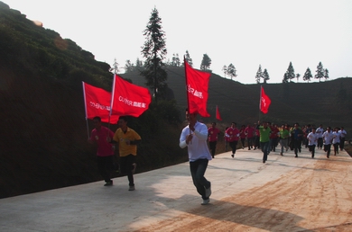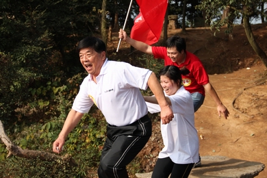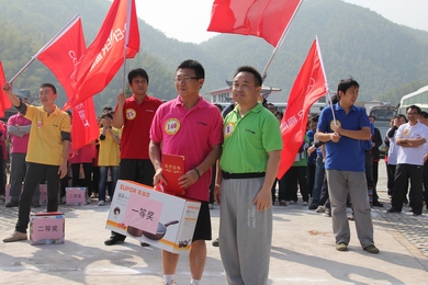 原來是江西高能投資集團(tuán)有限公司舉行2011員工登山活動(dòng)。一大早160余名參加活動(dòng)的員工分四路從南昌出發(fā),趕往獅子峰腳下集合。大約九點(diǎn),準(zhǔn)時(shí)到達(dá)比賽起跑點(diǎn)。參賽員工在各公司領(lǐng)隊(duì)的帶領(lǐng)下,按照事先抽取的跑道號(hào),秩序井然地排好隊(duì)列,各公司旗手站在首位,高舉隊(duì)旗,六種顏色的衣服組合在一起,和綠樹青山交相輝映,形成一道亮麗的風(fēng)景線。九點(diǎn)十分,比賽正式開始。大家無暇欣賞美麗的景色,一路你追我趕。約三十幾分鐘后,山上的工作人員聽到了有人即將登頂?shù)穆曇簦蠹夷弥鴶U(kuò)音器不停的吶喊助威。伴隨著加油聲,三個(gè)敏捷的身影向終點(diǎn)飛奔而來,幾乎同時(shí)到達(dá)終點(diǎn),其中一位居然是女性。閃光燈閃亮,記錄了這一勝利而又喜悅的時(shí)刻。他們是140號(hào)王小華、42號(hào)王世泰和25號(hào)許艱,成績(jī)分別為“32分17秒、32分20秒、32分32秒”。當(dāng)集團(tuán)公司和二、三級(jí)公司領(lǐng)導(dǎo)登上頂峰的時(shí)候,大家異常興奮。雖然身心疲憊,雖然汗流浹背,但是每個(gè)人臉上都洋溢著勝利的喜悅和光芒,因?yàn)樗麄兛朔酥刂乩щy,堅(jiān)持到了最后,特別是站到山頂上俯瞰著山下的一切,“會(huì)當(dāng)凌絕頂,一覽眾山小”,他們此時(shí)的心境應(yīng)該是無比的驕傲和自豪。