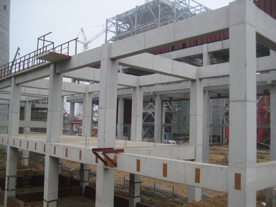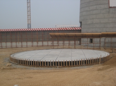 國電滎陽2×600MW機組脫硫島工程包括1#、2#室外構(gòu)筑物、電控樓、廢水處理車間、工藝樓等構(gòu)筑物,其中1#、2#室外構(gòu)筑物均包括有:吸收塔基礎(chǔ)、增壓風(fēng)機基礎(chǔ)及檢修支架、煙道支架、循環(huán)泵基礎(chǔ)及循環(huán)泵房、室外道路等。