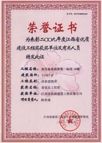 竑鼎福第獲獎(jiǎng)證書