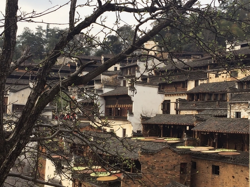 婺源篁嶺,是作為至今保留較為完好的山居古村落,吸引著四方游客,她以“曬秋”“天待九巷”特有的民俗及徽派景觀展示著當(dāng)?shù)赜凭玫牡赜蛭幕钌畹匚朔接慰?。我不禁?dān)心起來(lái),那寧?kù)o的鄉(xiāng)村古屋、靜謐的小橋、潺潺的流水,會(huì)不會(huì)被爆閃的燈光、嘈雜的廣播所襲擾。婺源的山水很純樸,即使飽受游人攪擾,但她依然還是靜靜地在那,很美......,婺源的美就是可以把所有的人和事都攬成為風(fēng)景。