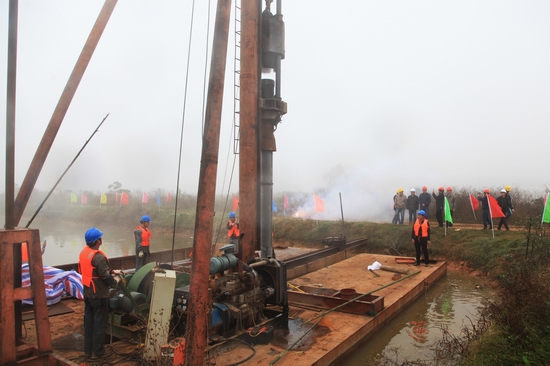 正式開(kāi)機(jī)打入第1根水泥樁。
