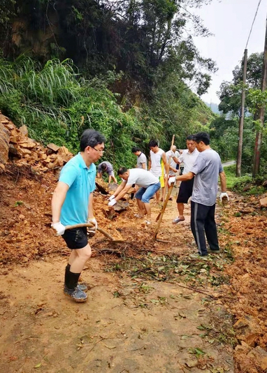 7月7—9日,楓渡水庫流域再遇強降雨,這是今年6月以來遭遇的第三輪強降雨。這次強降雨造成楓渡到芰南公路多處塌陷,交通中斷,企業(yè)生產(chǎn)和職工生活受阻。7月10日,公司黨委、行政組織黨員職工積極參與生產(chǎn)生活自救,清理塌方受阻路段,打通塌陷公路臨時便道。