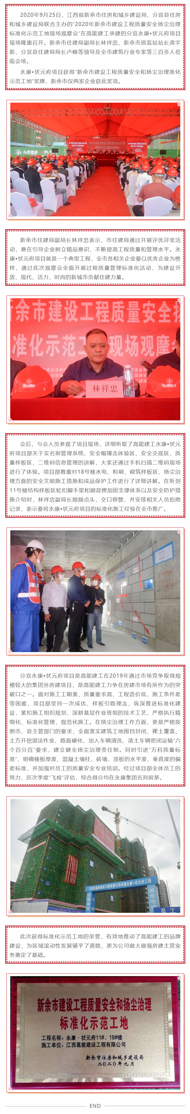 高能建工永康?狀元府項(xiàng)目榮獲 新余市建設(shè)工程質(zhì)量安全和揚(yáng)塵治理標(biāo)準(zhǔn)化示范工地