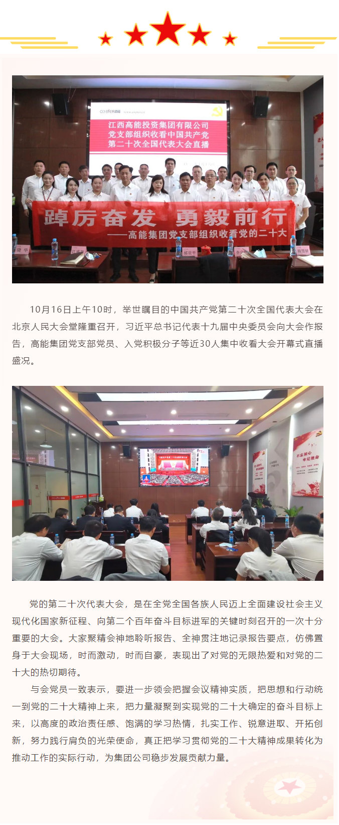 踔厲奮發(fā) 勇毅前行——高能集團(tuán)黨支部集中收看黨的二十大開(kāi)幕式