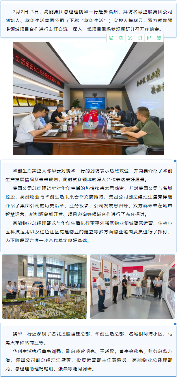 高能集團總經(jīng)理饒華一行拜訪名城控股集團、華創(chuàng)生活集團公司