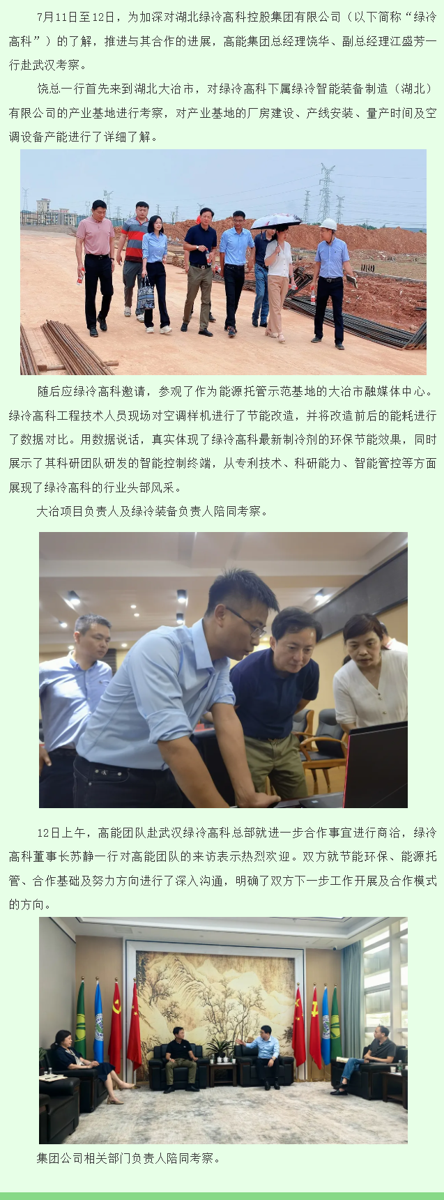 加深了解 推進合作——記高能集團赴湖北綠冷高科考察