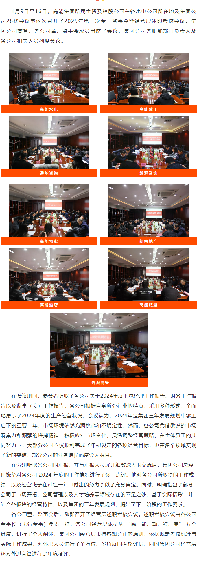 高能集團各全資、控股公司召開2024年度董、監(jiān)事會暨經營層述職考核會