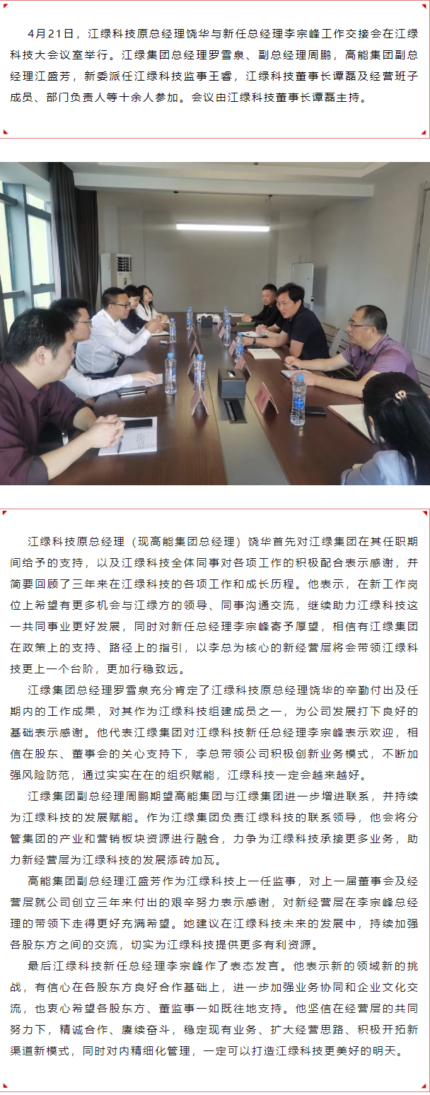 江綠科技召開總經理工作交接會