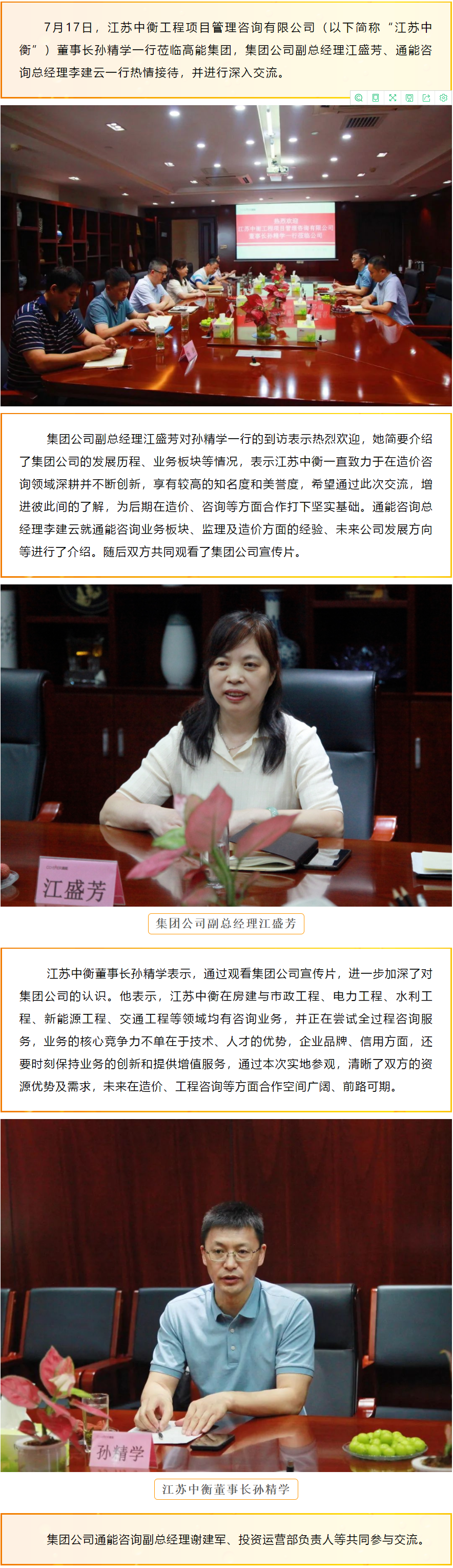 江蘇中衡工程項(xiàng)目管理咨詢有限公司董事長(zhǎng)孫精學(xué)一行蒞臨高能集團(tuán)參觀交流