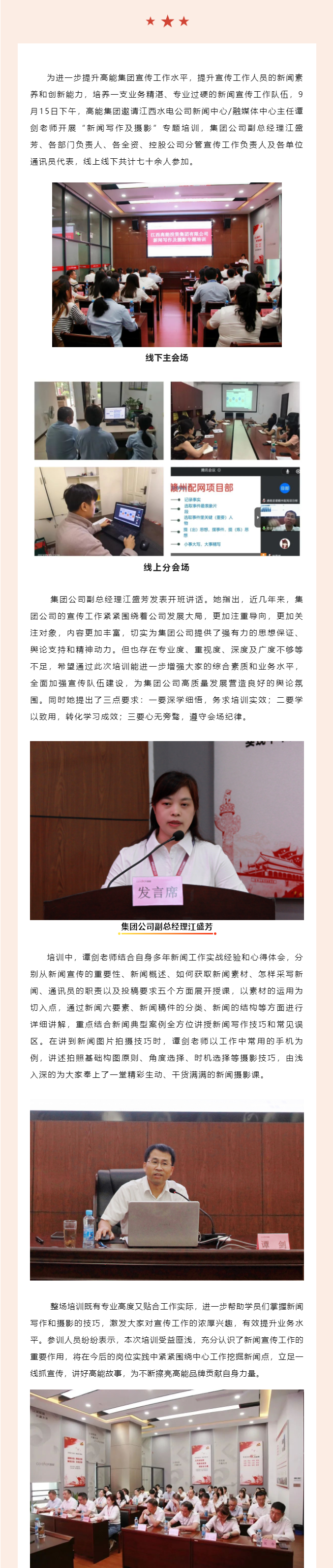 高能集團(tuán)開(kāi)展“新聞寫作及攝影”專題培訓(xùn)