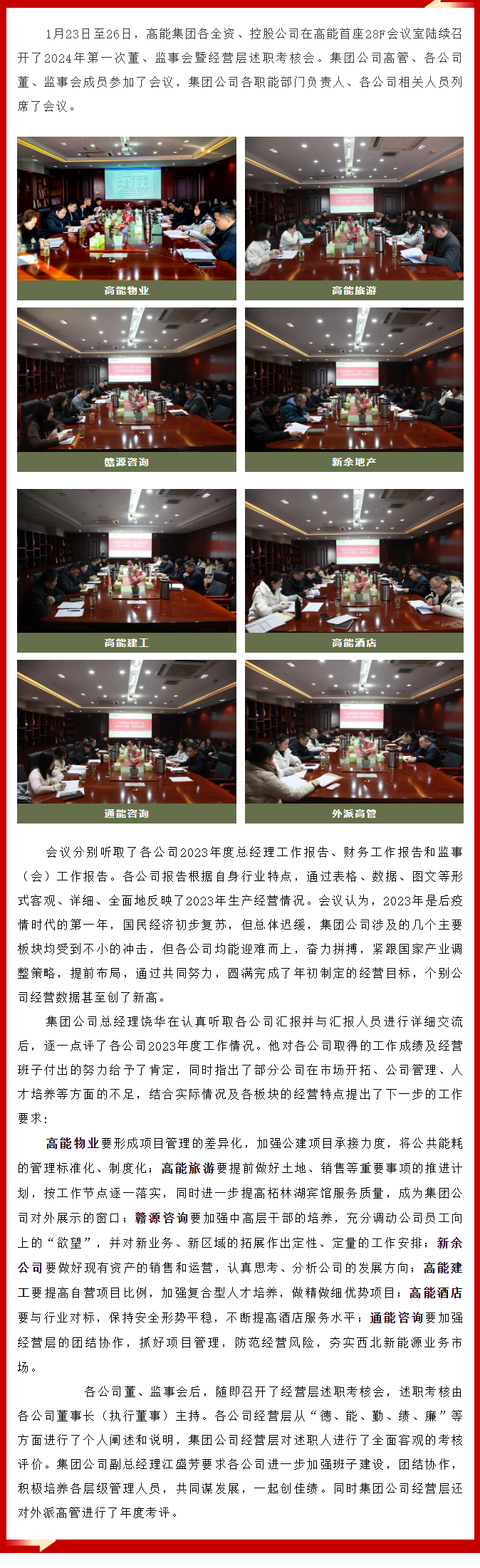 高能集團(tuán)各全資、控股公司召開(kāi)2023年度董、監(jiān)事會(huì)暨經(jīng)營(yíng)層述職考核會(huì)