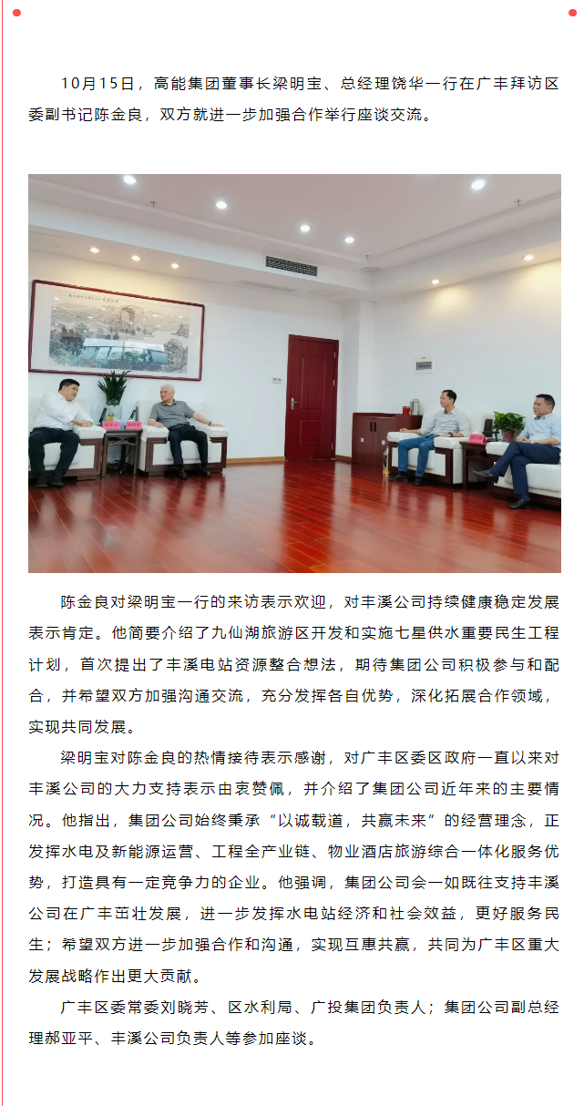高能集團董事長梁明寶一行拜訪上饒市廣豐區(qū)委副書記陳金良